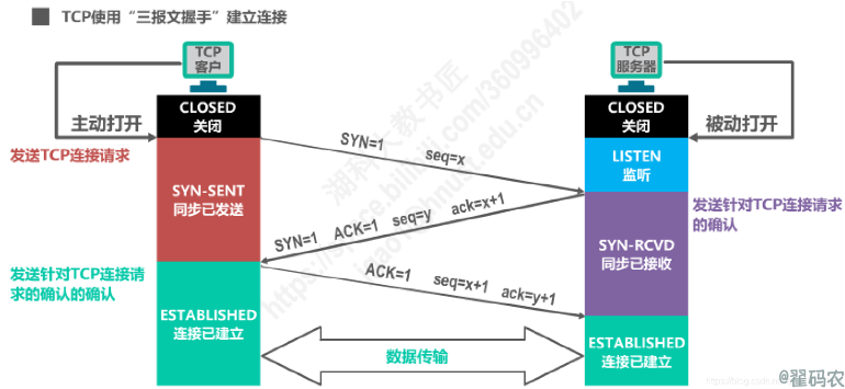 按照以下顺序,依次关注客户端和服务端两边TCP网络连接的状态,同时分析传送报文的含义。