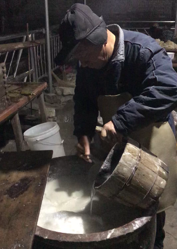 点浆,可谓是做豆腐里最难掌握的一个步骤了。