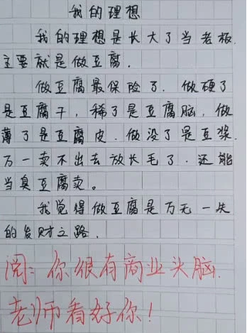 看过这个有趣的文章没,一个小学生觉得最划算的创业就是做豆腐了。